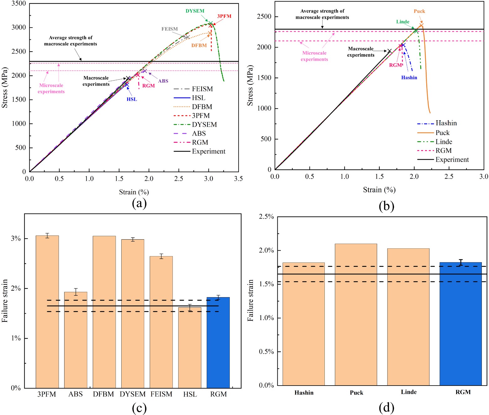 研究者还采用国外课题组的系统试验结果验证了此模型的有效性,并与其他经典的强度理论Hashin, Puck 和Linde等进行了对比。结果表明,建立的强度预测模型有效地提高了拉伸强度预测的精度。该模型描述的强度分布与实验结果具有良好的一致性,证明了模型的准确性和可靠性。