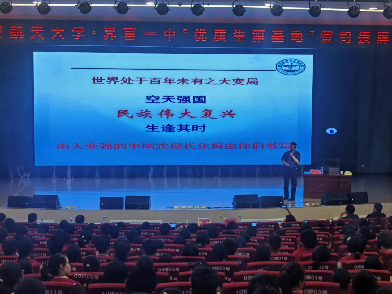 仪式结束后,杨超教授为现场师生带来了一场精彩的航空航天专题讲座。他详细介绍了航空航天领域的最新发展动态,从宇宙探索到卫星技术,再到航空器的设计与制造,每一个环节都充满了科学与技术的魅力。杨超教授还分享了北航在航空航天领域取得的重大科研成果和突破,激发了在场师生对航空航天事业的浓厚兴趣。他鼓励同学们要敢于追梦,勇于探索,为我国航空航天事业的发展贡献自己的力量。