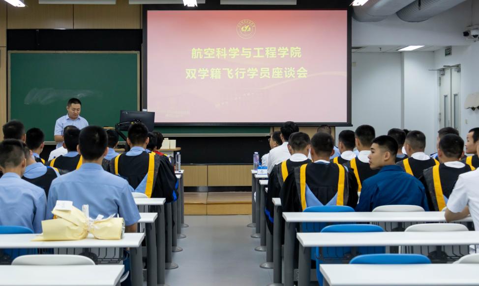 (通讯员:乔梁、赵艺博)6月23日上午,航空科学与工程学院在新主楼C201教室举行2020级“双学籍”飞行学员毕业座谈会。校人力资源部部长、学院党委书记鲍蕊,海军航空大学航空基础学院政委钟魁润、石家庄飞行学院理论训练系政治协理员王川、空军航空大学联合培养办公室主任李志鹏、海军航空兵第十一训练团飞行二大队教导刘博以及空、海双学籍飞行学员队负责人、学院专兼职辅导员和2020级全体“双学籍”飞行学员参加了座谈交流。座谈会由学院党委副书记梁伟涛主持。