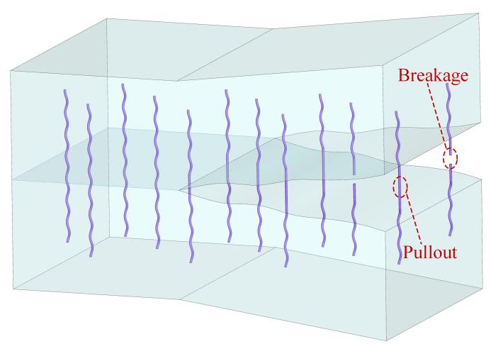 图1 针对含螺旋纤维的复合结构所提出的裂纹桥联模型。