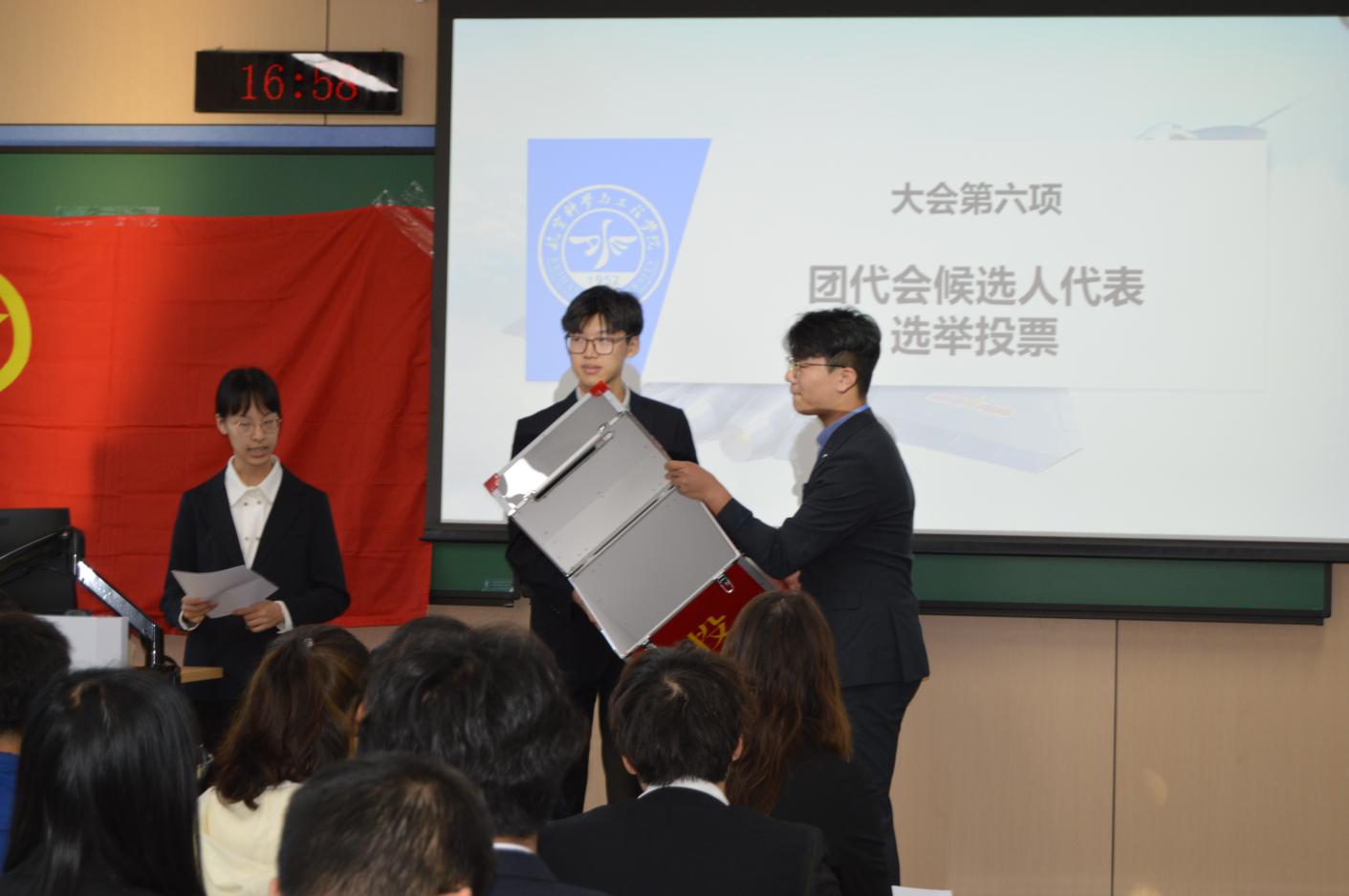 计票工作完成后,总监票人以得赞成票多少为序,向学院分团委和大会报告选举计票结果,大会主持人向大会宣布当选人名单。经过严格的选举程序,大会选举产生了牛硕等18名代表参加学校第二十二次团代会。至此,共青团北京亚洲成人在线一二三四五六区航空科学与工程学院委员会团代表大会圆满结束。会议结束后,全体参会人员合影留念。