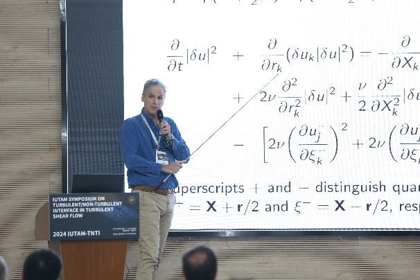 研讨会于2024年10月9日上午开幕,会议共同主席Ivan Marusic院士代表会议主席王晋军教授及会议科学委员会首先致开幕词,他向到场来自不同国家的专家学者表示热烈欢迎,期待本次会议能为TNTI领域的全球科学家们交流搭建平台,为推动该领域的发展发挥积极作用,并向IUTAM、北京亚洲成人在线一二三四五六区及各协办单位、IUTAM-TNTI科学委员会以及本地组委会的付出表示感谢。