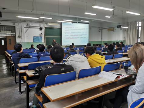 2019年10月16日下午,航空学院16级本科生于一号教学楼顺利进行了校历第七周学习日活动,本次活动的主题是升学就业指导促进学生未来发展规划,活动由辅导员杨旭彤主持,特邀请蒙志君、闫超、姬金祖三位老师为同学们介绍了自己的课题组研究及发展方向,并解答了同学们提出的问题。