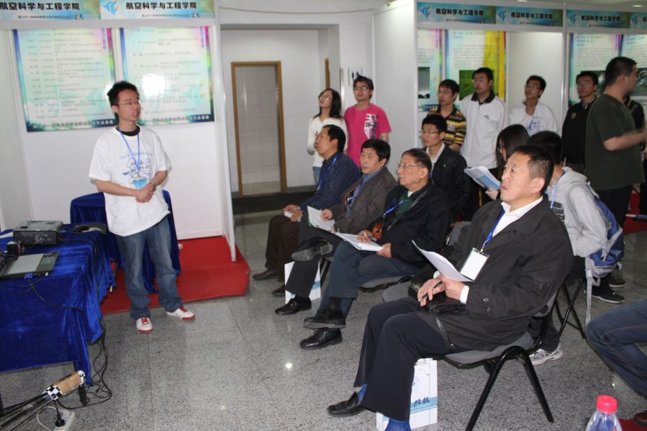 上届“冯如杯”由我航空科学与工程学院捧得。为再创佳绩,本届“冯如杯”筹备工作在我院领导的高度重视下有条不紊地展开。在学院专家多次评审以及组织试飞之后,参赛选手于4月15日晚完成布展。我院展区展出的形态各异的飞行器成为众多航空爱好者关注的焦点,作者从2007级到2010级,他们亲手制作的如矢量推进技术验证机、太阳能无人机平台、可变鸭翼验证机等功能特点各异的飞行器博得众多观众争相摄影,试飞视频也吸引了无数路过展区观众的目光。