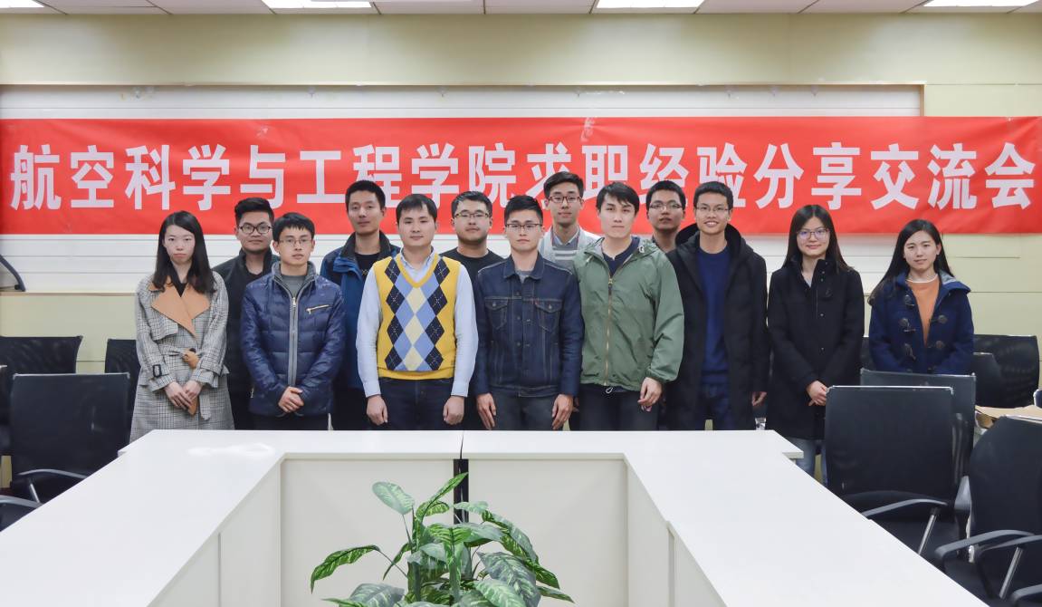 首先,主持人对应邀此次分享会的应届毕业生学长学姐们表达了诚挚的谢意,并对到场的观众表示热烈欢迎。随后,学长学姐们开始为大家讲述在求职中的经历和经验。穆作栋分享了他在航天二部面试的经历,并对航天科技/科工、航空工业及其他系统的情况作了介绍,指出求职之前要针对自己的规划选择合适的岗位;章异嬴介绍了他的求职准备,讲解了简历制作需要注意的问题和应试技巧等,建议大家求职前最好做好规划;张强详细讲述了他在成都飞机设计研究所(611所)的求职历程,介绍611所在北航的签约情况、面试流程、部门情况等;郑玲丽讲述了求职准备和简历投递,并根据自身特点和发展规划在多份offer做出权衡,选择自己最心仪的职位;俞立平则结合自身的科研经历,分享他在读博期间对科研工作的心得体会。