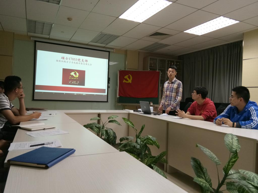 会议由积极分子公开答辩、“两学一做”学习教育之党章知识问答、在场党员同志点评、公开投票唱票计票等环节组成。各积极分子主要从自我介绍、学生工作、入党历程、入党动机和对党的认识5方面进行PPT展示,从PPT展示环节来看2017级硕士积极分子在学习科研、学生工作等方面表现非常突出,有发表2篇Q1区SCI文章的熊闯同学,有在航模队屡次获奖并担任硕士大班长的霍明宇同学,但在党性修养方面又稍显不足,需要所在支部、培养联系人加强培养,确保高质量发展党员。“两学一做”学习教育之党章知识问答环节由支部制作题库,积极分子现场抽取两道题目作答,回答问题能在一定程度上反映积极分子的学习情况。