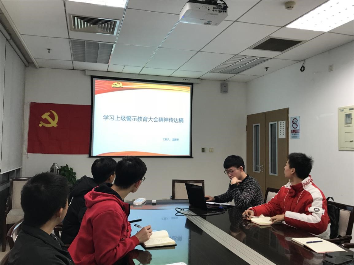 预备党员转正会议后,支部开展了“反腐倡廉每季一课”的集中学习活动。活动主要由温国安,肖涵,杨锐三名同志进行讲解。温国安同志主要介绍了自己学习上级警示教育大会精神传达稿后的感想。在警示教育大会中,工信部党组书记、部长苗圩同志发表了重要讲话,核心精神是认真贯彻习近平总书记重要批示精神,始终把政治建设摆在首位,努力把工信部建成让党中央放心,让人民群众满意的模范机关。同时,坚定不移贯彻中央八项规定精神,打好作风建设持久战。肖涵同志针对李洪彦违纪事件,分析了案件特点,问题剖析,警醒教训。杨锐同志介绍了自己深入学习曹书记在警示教育大会上的讲话的思考。曹书记在大会上的讲话核心有三个部分:把党的政治建设作为根本建设,加强党对于学校工作的全面领导;狠抓师德师风和机关作风建设,以作风建设新成效护航学校事业新发展;要求让制度“长牙”纪律“带电”,把纪律建设成果转化为助推学校“双一流”建设的强大动力。