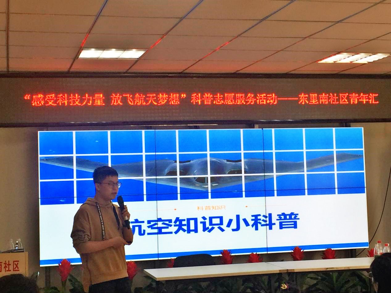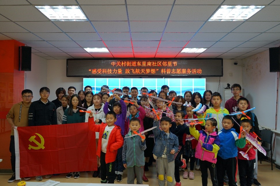 普及航空知识,弘扬科学精神,感受科技力量,放飞航空梦想。2019年10月26日,航空科学与工程学院硕士生18053学生党支部携手人文与社会科学高等研究院的研究生们,赴北京市中关村东里南社区服务站开展了“感受科技力量,放飞航空梦想”科普志愿活动。本次活动共有30名研究生党员与13名6至12岁的小朋友参加,小朋友们的家长陪同参加。志愿活动的主要内容是给孩子们进行航空知识小科普,并与他们共同完成一个航模的拼装与试飞。