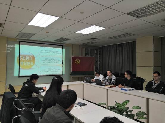 之后,在马英超同志的主持下,支部进行了“不忘初心,牢记使命”主题教育学习会。首先,马英超同志进行了主题教育活动动员,指出“不忘初心,牢记使命”是要求各位党员要牢记自己的入党申请和入党誓词,在积极学习党史和革命先辈伟大事迹的基础上,对照自身行为找差距,同时要牢记党员身份,对个人未来规划要与党员的初心使命结合。