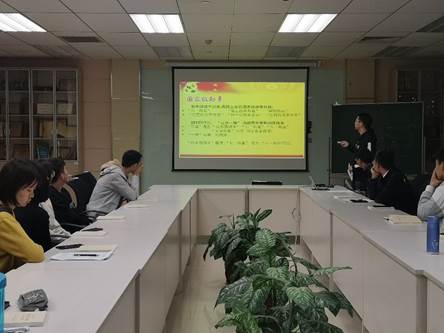 在全体同志起立奏唱《国际歌》后,进入了本次会议的第一个内容,由我院2017级辅导员胡天豪同志介绍参加70周年国庆阅兵群众游行的经历。参加群众游行的同学们为这次活动付出了很多,无论是每天起早贪黑高强度的训练,还是日复一日对科研、休息时间的占用,同学们都坚持了下来,为的就是这份参与阅兵活动的光荣,为的就是能在全国人民面前展示出我们当代年轻人、北航大学生潮气蓬勃的风采。正如报告的题目所言,这次活动是一次“无悔的选择”。