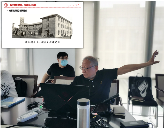 党课第二部分内容是“传承北航精神,实现空天报国”。徐老师概述了八校合并筹建北航的历史,详细介绍了建校初期校领导和归国教授们为建设北航做出的卓越贡献。武光、周天行、沈元、王俊奎、陆士嘉、王德荣、屠守锷……每个光辉的名字,都代表了一段艰苦创业的奋斗史,他们的故事就是早期北航精神最好的体现。