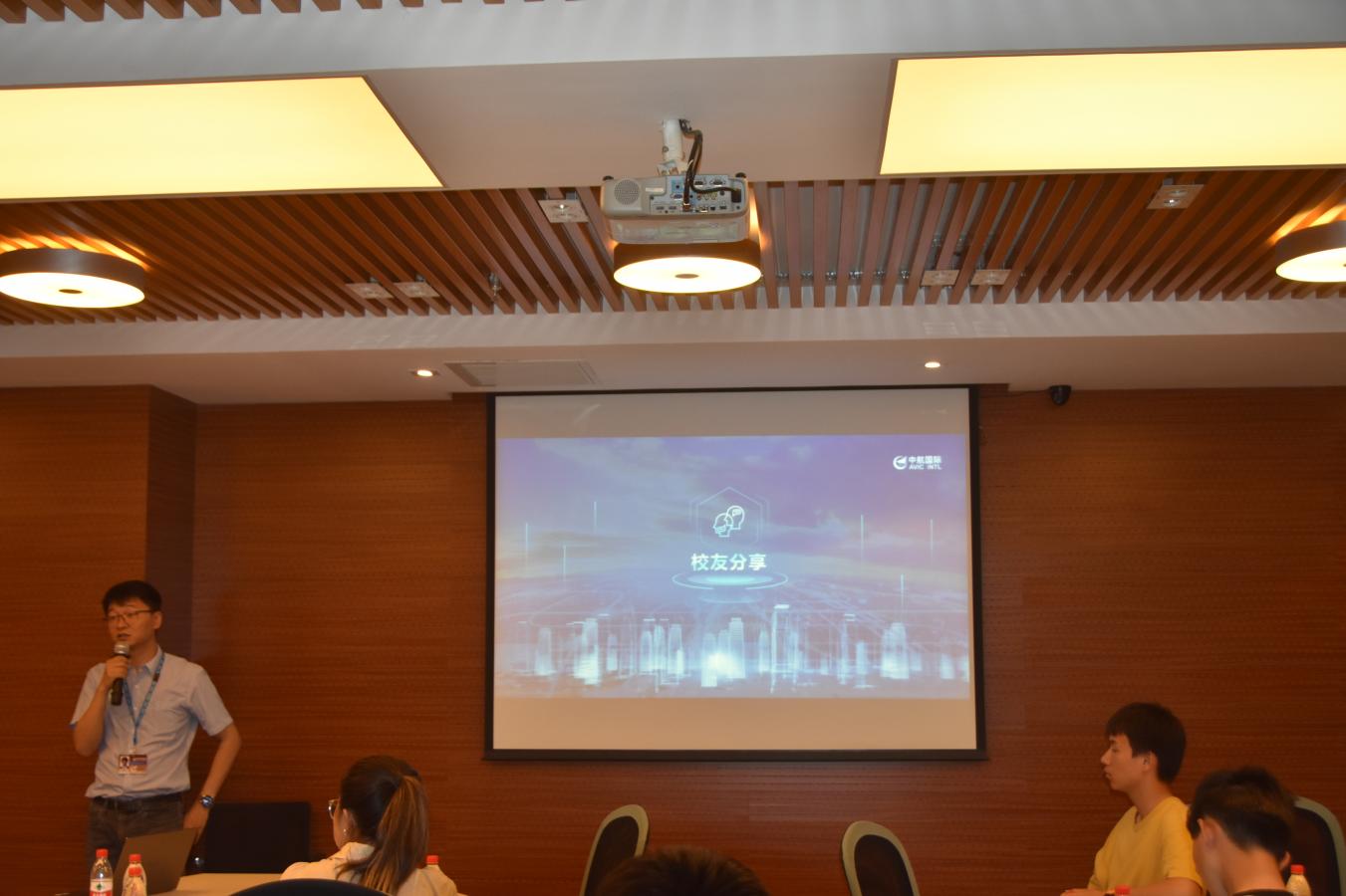 新大洲公司张荻总经理进行校友发言,欢迎我院师生前来中航国际进行参观交流,就公司的发展历程、核心业务到未来战略规划,进行了详尽的介绍,并分享了自己在职场上的宝贵经验。他鼓励大家树立空天报国情怀,在航空制造业国家重大工业领域中发光发热。