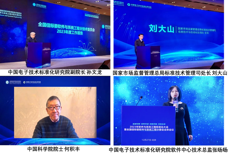 在本次会议中,国家市场监督管理总局标准技术管理司信息技术与自动化标准处处长刘大山出席会议,中国科学院院士何积丰发表主旨演讲,中国电子技术标准化研究院副院长孙文龙代表软工分委会作年度工作报告。中国电子技术标准化研究院软件中心技术总监张旸旸围绕分委会本年度重要研究成果,作《MBSE技术与标准化研究报告》主题报告,并分享MBSE标准化思路和应用实践。