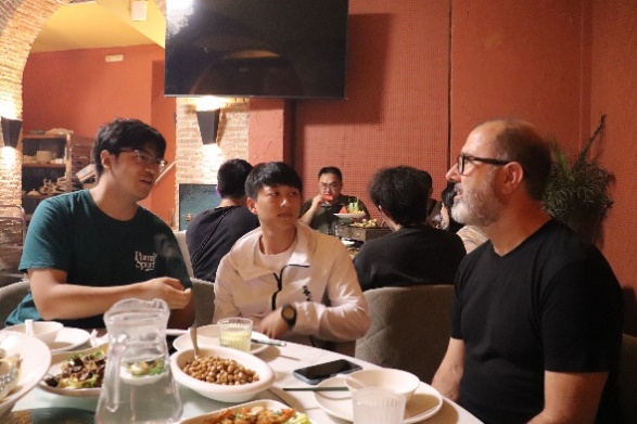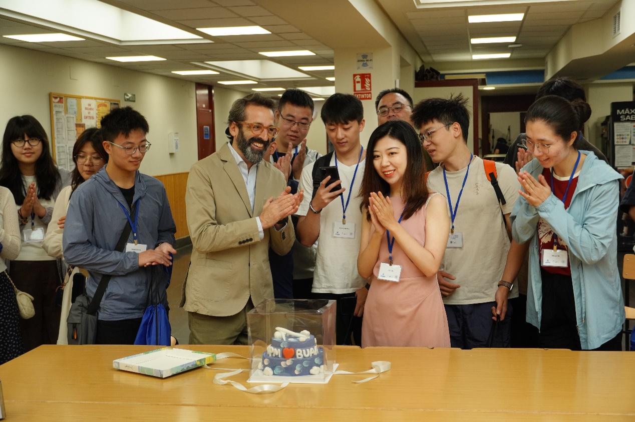 课程期间,马德里理工大学航空航天工程高等技术学院举行了欢迎午宴,Gustavo Alonso院长回顾了马德里理工大学与北京亚洲成人在线一二三四五六区的深厚友谊,并表示,期待此次暑期学期成为增进双方合作和知识共享的桥梁。双方带队老师共同给大家分享了代表双方友谊与合作的蛋糕。