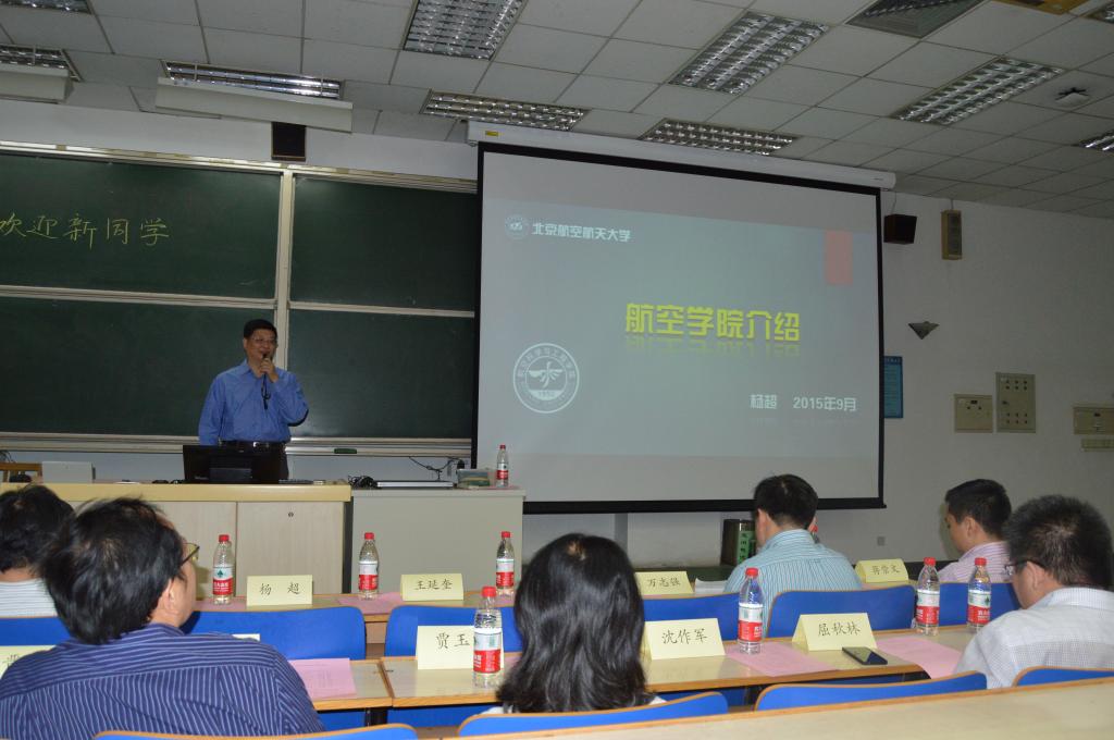 首先,航空学院院长杨超教授代表学院对来自祖国各地的266名新硕士研究生同学和83名新博士研究生表示热烈的欢迎和衷心的祝贺。杨院长详细介绍了航空学院的发展历程、系所设置、教学科研情况,并结合社会热点和行业发展剖析了航空学院所面临的机遇与挑战。最后,杨院长寄语同学们“心系航空、志在蓝天、立志高远、艰苦奋斗、求实创新”,勉励大家通过不懈的努力实现人生的价值。杨院长讲话全面深刻、内容详实,赢得了新生的阵阵掌声。