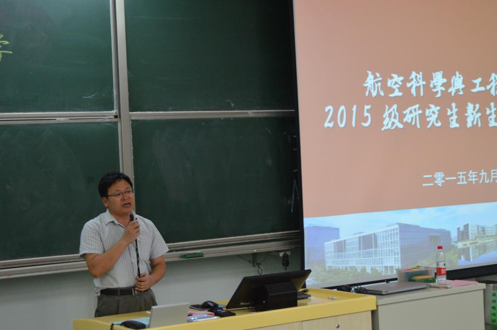 航空学院党委书记林贵平教授结合学校1、10、100的发展目标,对研究生新生提出做学问要具有创新精神,具有锲而不舍的毅力;同时,林书记强调研究生在科研时应严格遵守学术道德,讲学术诚信,提高保密意识,完成从被动学习到主动科研的跨越。