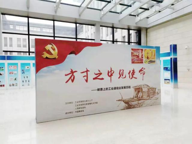 展览以学习贯彻习近平总书记重要讲话精神为主线,以“国家的名片”——邮票为载体,集中展现了我国工业和通信业艰苦奋斗、开拓创新的发展历程与辉煌成就。展览分为“不忘初心 工信事业薪火相传”、“自力更生 构建完整工业体系”、“改革开放 中国制造崛起东方”、“牢记使命 ‘两个强国’ 书写华章”四个部分,展示了“红色电波”、“钢铁工业”、“工业产品”、“中国首次载人航天飞行成功”、“党的十九大”“中国梦”“社会主义核心价值观”、“C919大型客机首飞”“神舟飞船与天宫一号交会对接”等大量邮票。